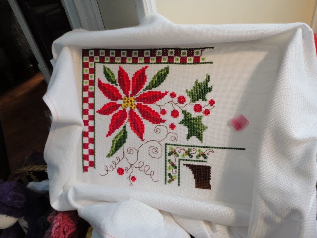 I also had a bit of time to get some more stitching done. Part of my shopping today was purchasing more DMC floss for just this project. More snow is due in the morning so I hope to get some more stitching done then.